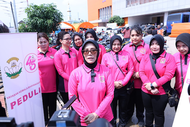 Bekasi - Yayasan Kemala Bhayangkari bersama Polres Metro Bekasi Kota menunjukkan kepedulian mendalam terhadap warga yang terdampak banjir di Bekasi.